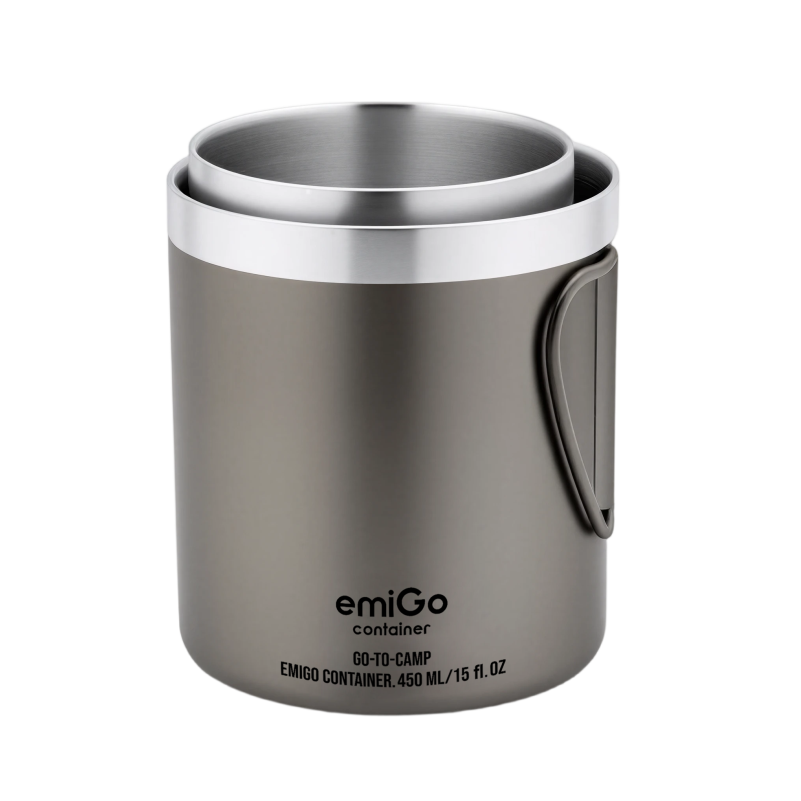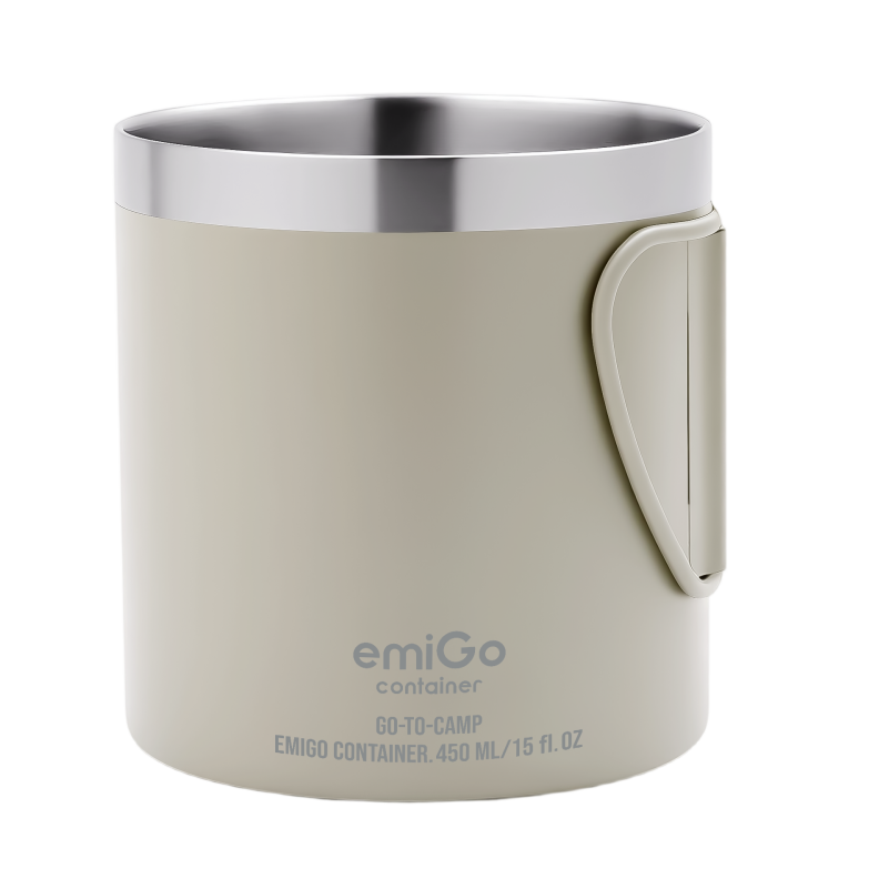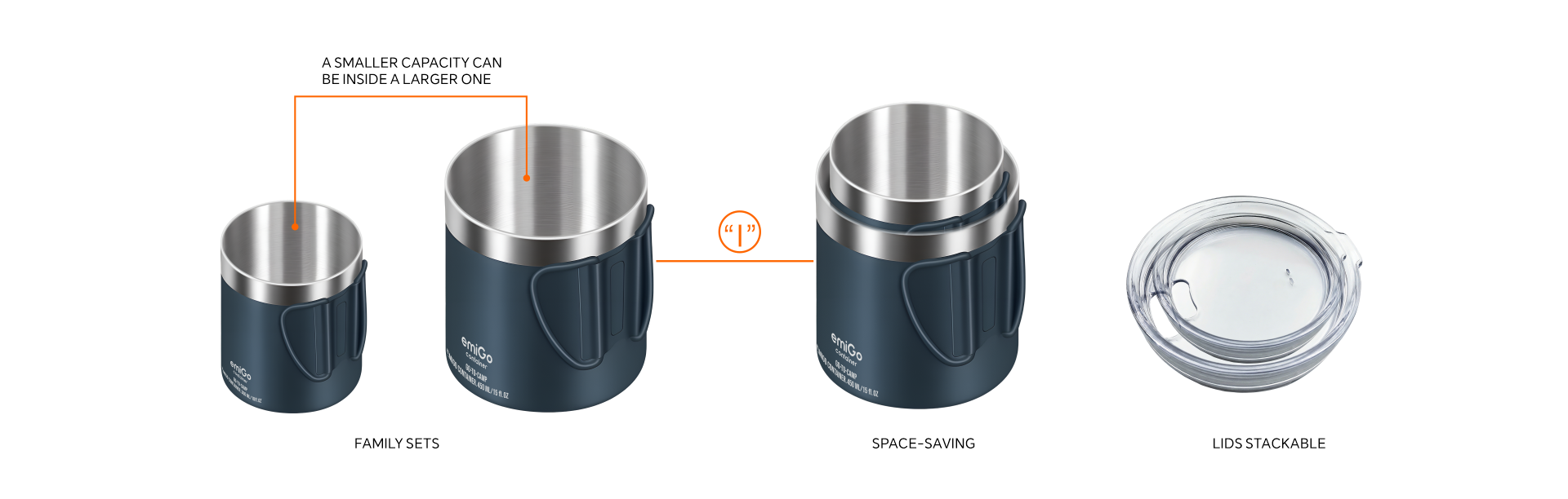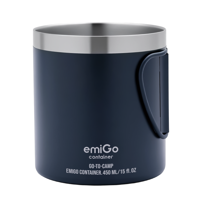 A versatile Camping Cup, foldable handle serves as a handle cup & handheld cup, space-saving when collapsed