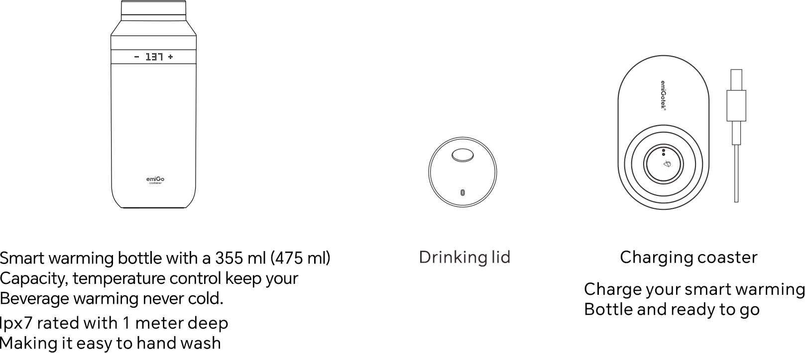 Customization and Control emiGo Temperature - Controlled Travel Mugs come with advanced features that allow you to customize the temperature of your drink. Use the touch displays or emiGo App, enabling you to set your preferred temperature with just a few taps. This level of control ensures that your beverage is exactly how you like it, whether you want a mildly warm herbal tea or an extra coffee / beverage drink.