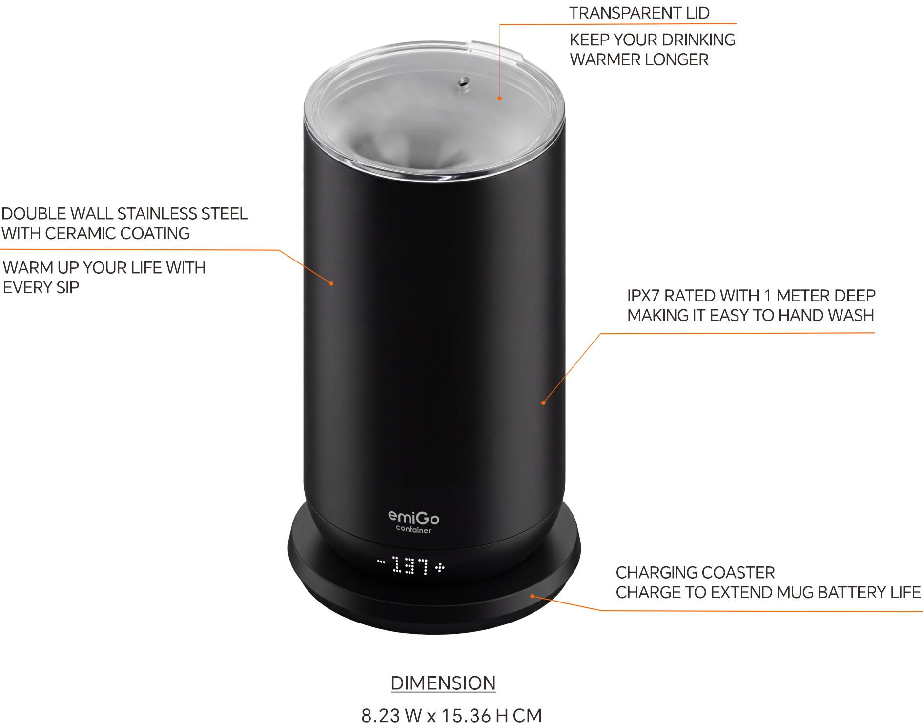- Smart with or without App: pair this temperature control mug with emiGo app to set the temperature, customize presets and more; self-heating beverage mug is also functional without the app and remembers your last-used temperature ( 131℉ out of Box), or use the touch display on the mug to set your temperature without a smartphone.