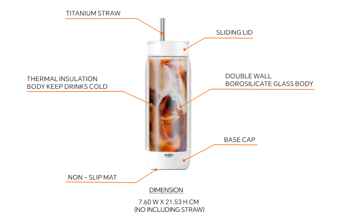 - Made of double wall borosilicate glass material, it features thermal insulation between inner and outer to keep drinks cold for extended periods, the surface remains dry and free from condensation. The Lid is made of Tritan material, and the Straw is made of Titanium, every sip we take is safe and reliable.
